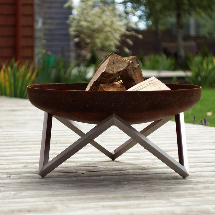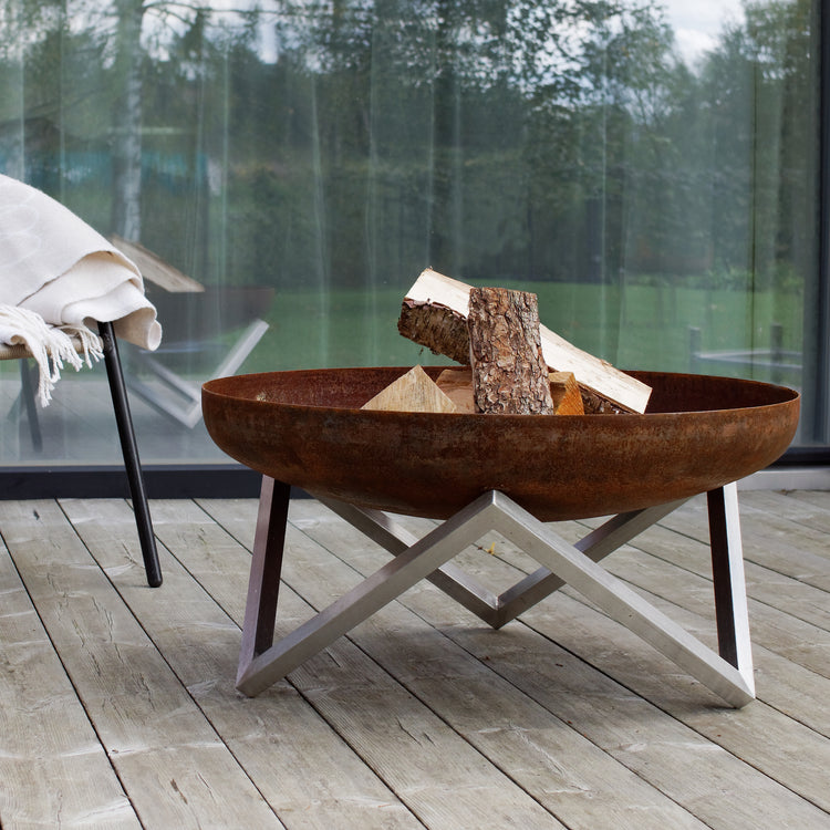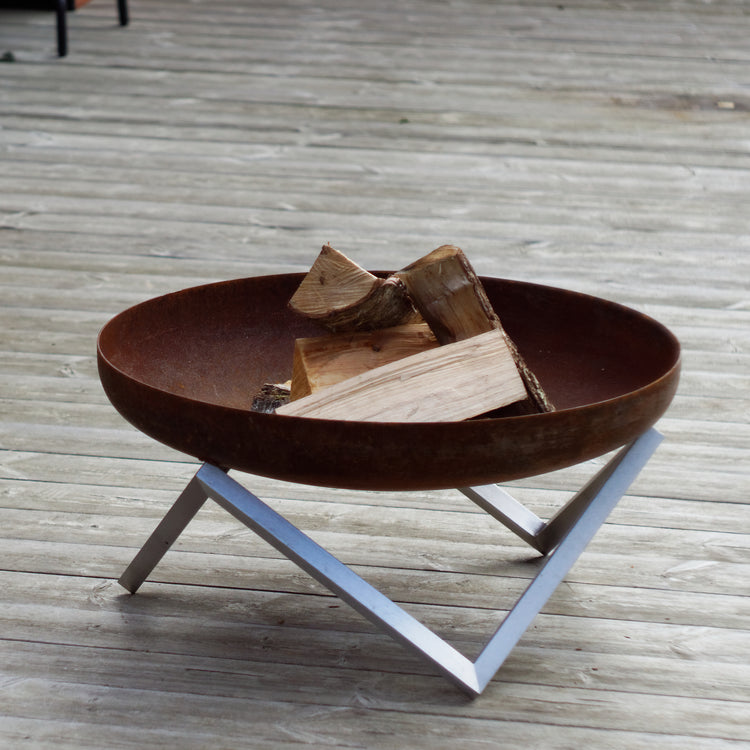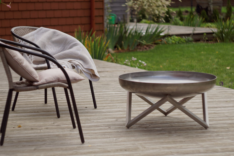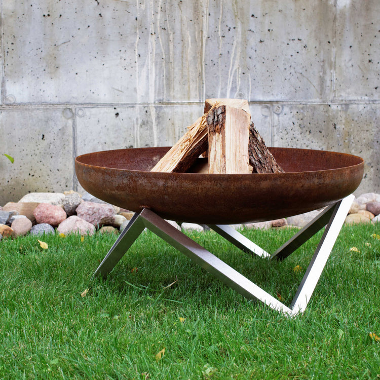 Misa paleniska jest piaskowana tak, aby tworzyła się na niej naturalna, elegancka rdza. Nogi są ręcznie wykańczane przy użyciu najwyższej jakości stali nierdzewnej. Ten produkt jest bardzo trwały i posłuży przez długie lata. Stal węglowa użyta do produkcji misy paleniska z czasem pokryje się ładną patyną. Misa wykonana jest z solidnej rdzewiejącej (węglowej) stali i wygląda bardzo błyszcząco, prawie jak chrom. Po wystawieniu na działanie wody rdzewieje. Zwykle ten naturalny proces trwa kilka tygodni.
