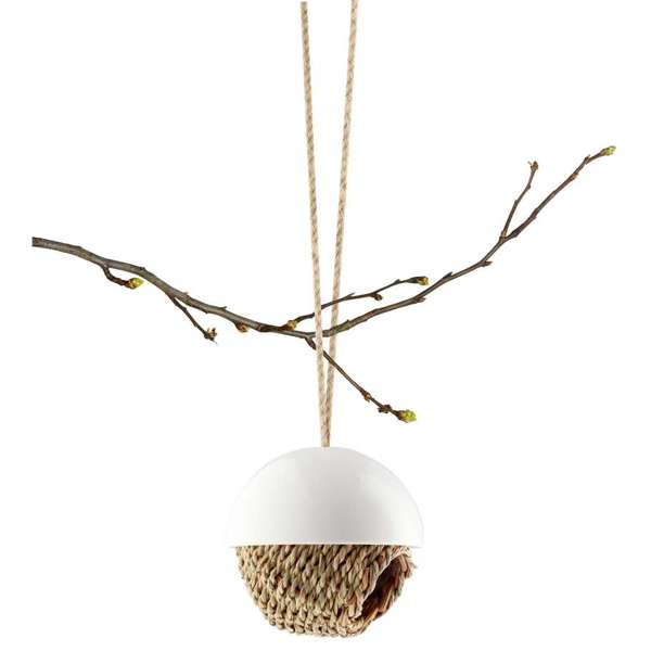 Wisząca budka dla ptaków została stworzona z myślą o ptaszkach, które zostają na cały rok w naszym kraju i trudno im zdobyć sobie pokarm, czy schronienie.  Karmnik marki Eva Solo przypomina niewielkie gniazdko, dzięki czemu posilające się w nim ptaszki czują się bezpiecznie. Karmnik dzięki kompaktowym rozmiarom można zawiesić nie tylko w ogrodzie, ale również na balkonie. Karmnik jest wyposażony w praktyczny sznurek, dzięki czemu jego montaż jest łatwy i przyjemny. Gniazdo można w prosty sposób wyczyścić i jest przystosowane do całorocznego użytku.