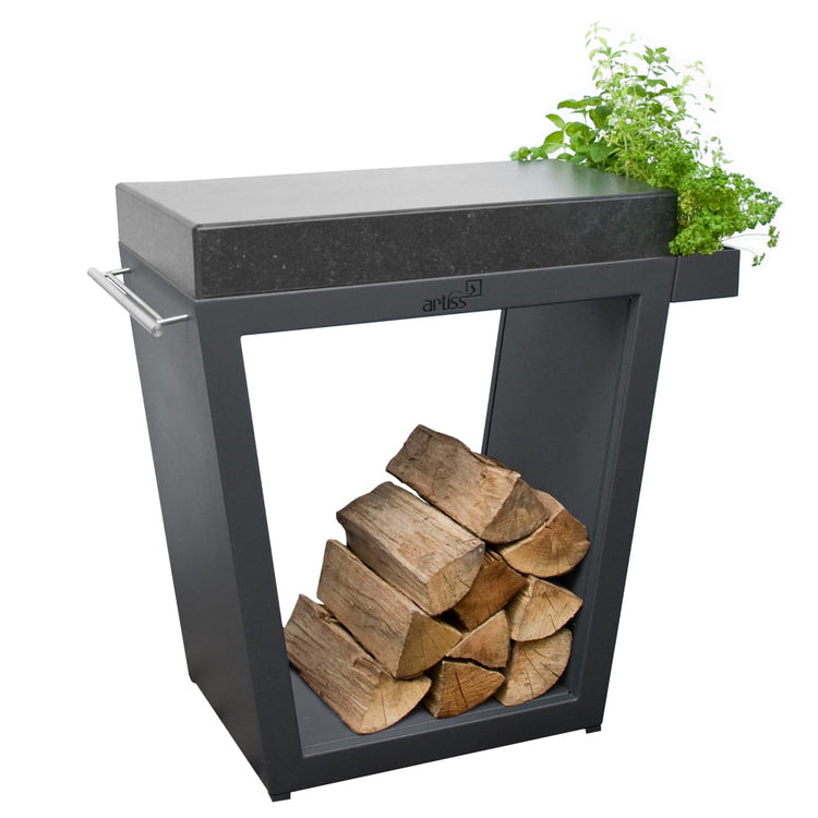 Stolik ogrodowy marki Artiss ułatwi przygotowanie potraw na świeżym powietrzu, jest on  wyposażony w duży, roboczy blat. Idealnie sprawdzi się również jako miejsce na postawienie przekąsek czy napojów. Stolik trapezowy ma oryginalny i nietuzinkowy kształt, który uatrakcyjni ogrodową przestrzeń.  Każdy ze stolików można dodatkowo spersonalizować wybierając rodzaj blatu dopasowany do potrzeb kucharza. W ofercie posiadamy blaty drewniane oraz kamienne: granitowe lub z kwarcytu. Pod blatem znajduje się przestrzeń na opał, stoliki wyposażone są także w pojemnik na zioła i przyprawy oraz wygodną rączkę do zawieszenia narzędzi, rękawic lub fartucha.